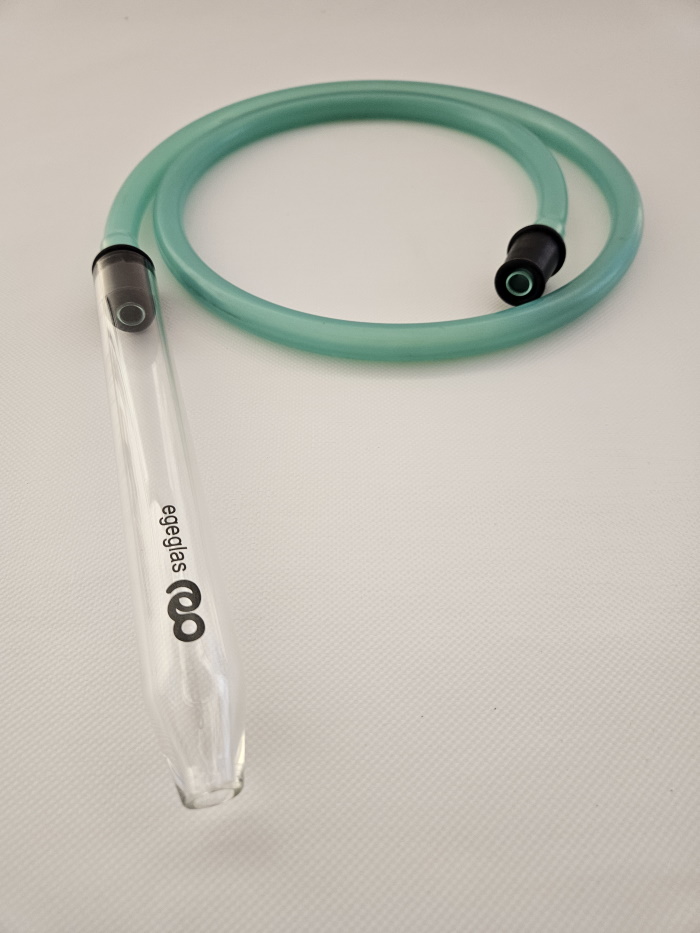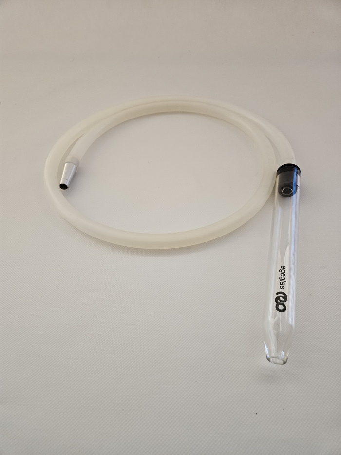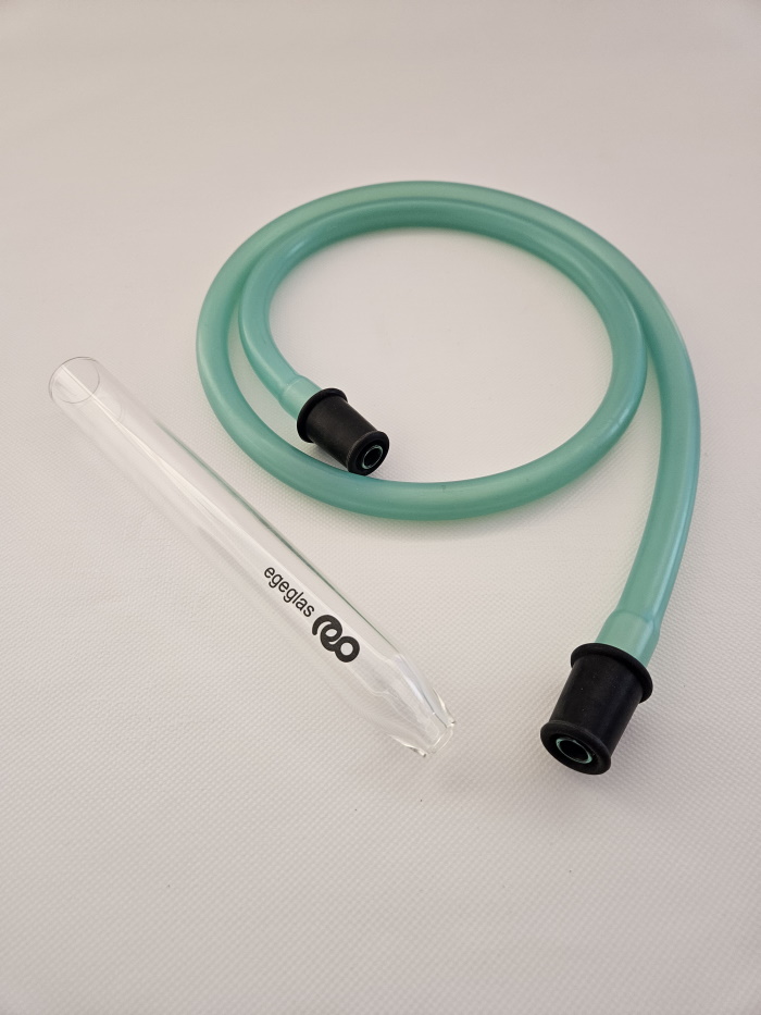 Shisha Schlauch aus lebensmittelechtem Silikon mit Glasmundstück.