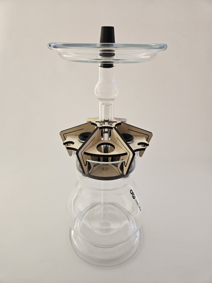 - Mundstückhalter: Wenn Sie mal gerade nicht ziehen wollen oder die Hände frei haben müssen, können Sie Ihr Mundstück einfach in die Shisha hineinstecken. Dort ist es sicher aufbewahrt und leicht wieder zu greifen.